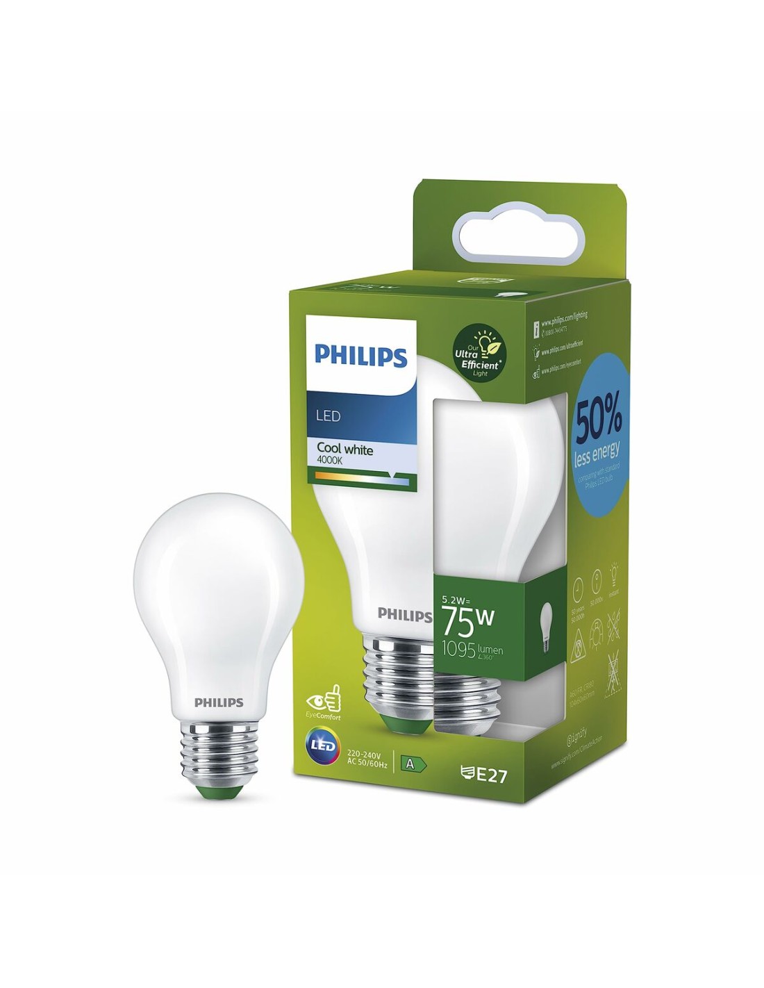 Lampe LED Philips Classic A 75 W 5,2 W E27 1095 Lm (4000 K) au meilleur prix.