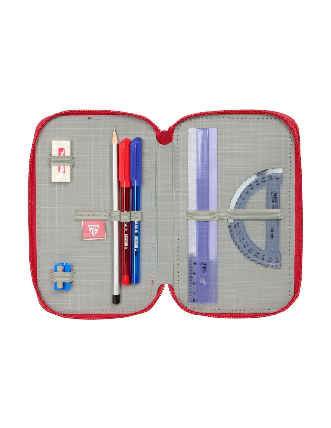 Pochette à crayons triple Sevilla Fútbol Club Rouge 12,5 x 19,5 x 5,5 cm 37 Pièces