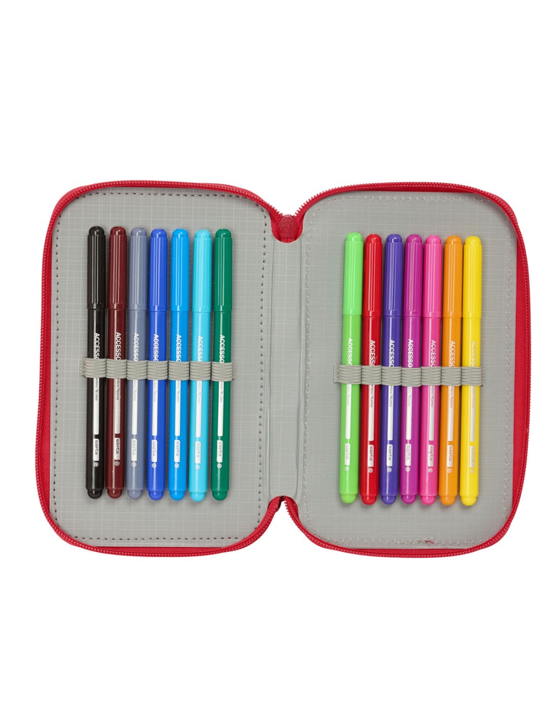 El portatodo Safta es un estuche triple diseñado para ofrecer una organización eficiente y proteger los útiles escolares o de oficina gracias a su construcción resistente al agua. Con unas medidas aproximadas de 12,5 x 19,5 x 5,5 cm, presenta un tamaño compacto y práctico que facilita su transporte en mochilas y estuches. Este portatodo destaca por su triple compartimento, que permite almacenar y separar lápices, bolígrafos, rotuladores y otros accesorios, favoreciendo un acceso rápido y ordenado. Su diseño incorpora referencias al Sevilla FC, lo que añade un valor esencial para aficionados y coleccionistas, combinando funcionalidad con un toque personalizado. Fabricado con materiales duraderos, ofrece una solución resistente para el día a día escolar o profesional, manteniendo el contenido protegido frente a salpicaduras o condiciones húmedas gracias a su protección especial. Por sus dimensiones y versatilidad, este estuche es adecuado tanto para niños en edad escolar como para adultos que necesiten un organizador compacto y fiable de sus útiles de escritura y dibujo. En conjunto, el portatodo Safta representa una propuesta equilibrada entre capacidad, durabilidad y diseño temático, ideal para usuarios que buscan funcionalidad y estilo en un estuche práctico.