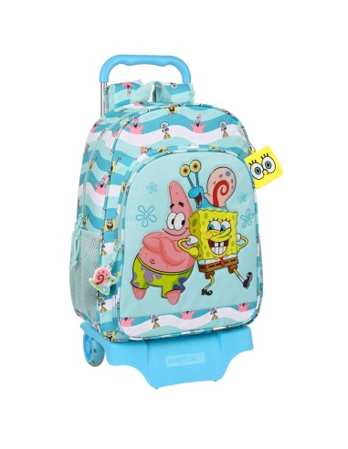 Cartable à roulettes Spongebob Stay positive Bleu Blanc (33 x 42 x 14 cm)