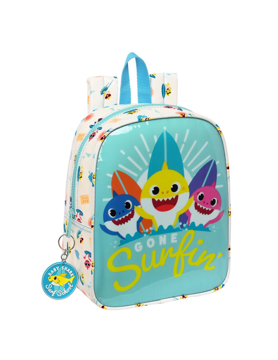 Sac à dos enfant Baby Shark Surfing Bleu Blanc 22 x 27 x 10 cm et faites envie à vos collègues!