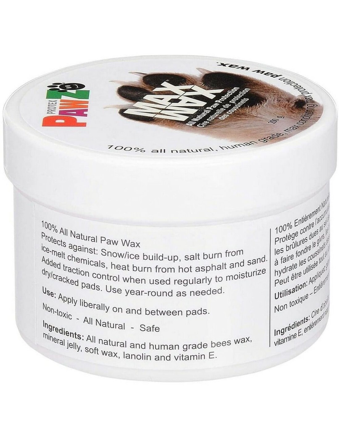 Les pattes de votre chien aboient à cause des coups quotidiens qu'ils prennent chaque jour dans les rues, les sentiers, les pelouses et les sentiers. Vous pouvez désormais leur offrir une protection et un soulagement maximum de la marque de soin des pattes la plus fiable. Protège contre l'accumulation de neige et de glace, les fondants chimiques, la chaleur brûlée par les chaussées chaudes et le sable Utiliser régulièrement pour hydrater les coussinets secs ou craquelés. Sans odeur et sans alcool. Préparé à partir de cire d'abeille de qualité humaine, de lanoline et de vitamine E Léchage et digeste en toute sécurité. Idéal aussi pour les nez et les coudes gercés. Aide à promouvoir des pattes saines tous les jours de l'année